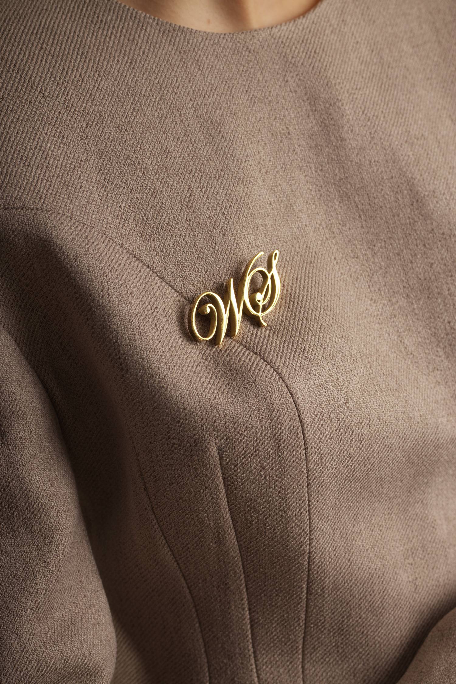 The WS Logo Brooch is expertly crafted in 18k gold plating with the overlapping WS initials. Its clean lines, polished finish, and subtle sculpted edges catch the light beautifully, adding a refined focal point to blazers, dresses, blouses, etc. Designed to elevate any outfit, this brooch combines timeless elegance with deliberate craftsmanship, making it a distinguished accent for your wardrobe.